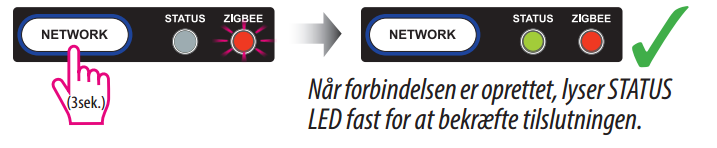 Network Button Activation: Click and hold the NETWORK button in 3 sec, until the Zigbee LED is flashing
