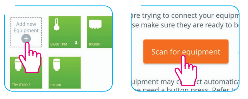 Select "Add new equipment" button: Select what you want to add whether it's a EGOOT PM, RX3ORF, or TRV IT600 3.