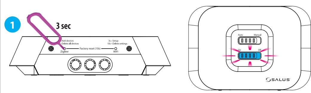 1. Press and Hold ZigBee: Press and hold the ZigBee button on the receiver for 3 seconds. The ON/OFF button will begin to flash blue, indicating it’s in pairing mode.