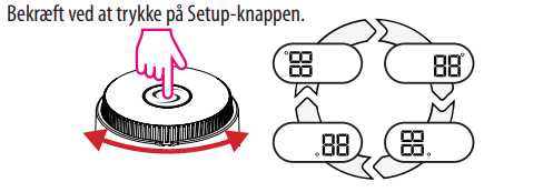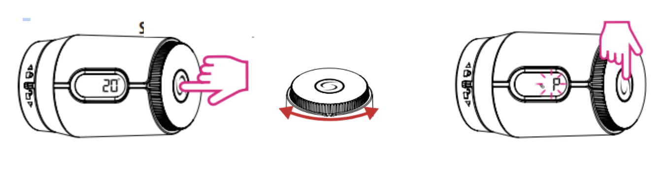 Step 1. Give the button a short press, then a long press until the display is flashing. Turn the dial until you see a P in the display. Confirm with a short press.