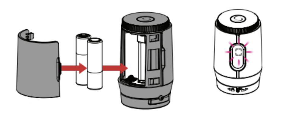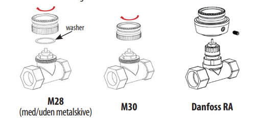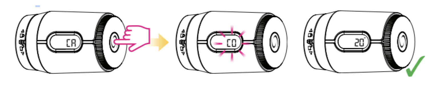 Step 2. The TRV will subsequently write CA in the display which means calibration. Start the calibration by giving the button a short press. When the display shows the room temperature the calibration has finished.