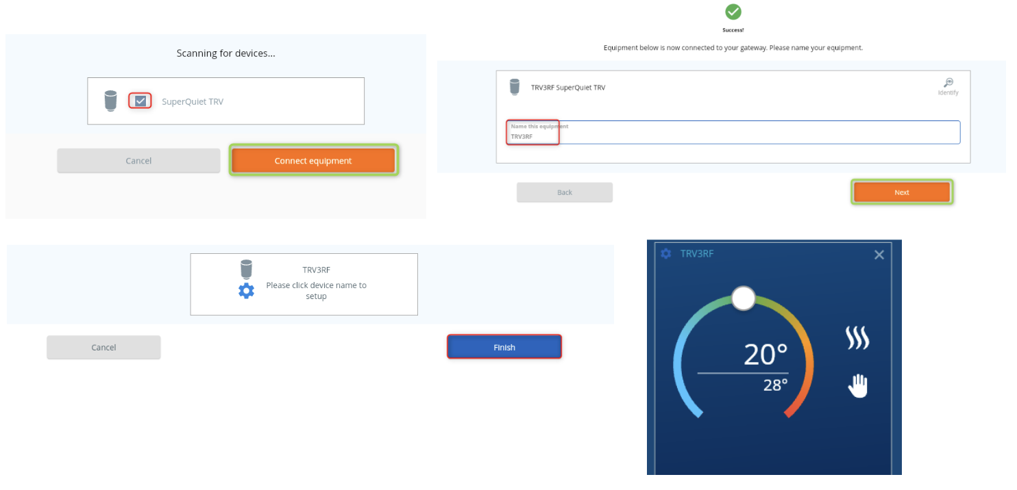 Step 3. Connect the equipment by select the equipment in the box and click “connect equipment”. Name the equipment and click next. Click finish to finishing the process.