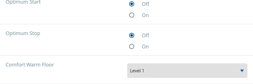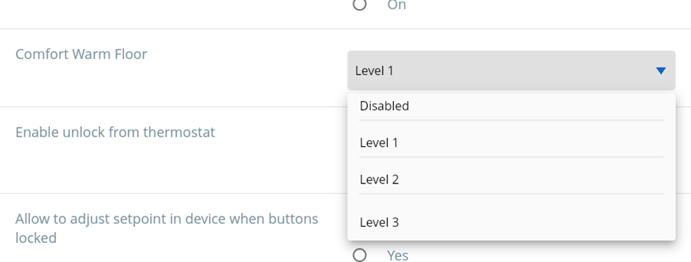 | 15. CLICK ON THE ‘’COMFORT WARM FLOOR’’ BOX | 16. AND SELECT ‘’DISABLED’’ |